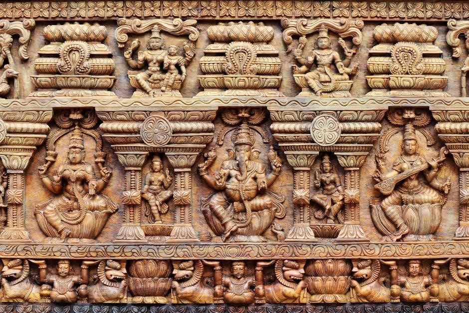 The Lakshmi Ashtakam is deeply rooted in Hindu scripture, specifically sourced from the Padma Purana, an ancient text revered for its spiritual wisdom. This sacred hymn is believed to have been chanted by Lord Indra himself, the king of the gods, in devotion to Goddess Lakshmi. The Padma Purana narrates the divine praises of Lakshmi, emphasizing her role as the embodiment of prosperity, wealth, and liberation. The hymn’s origin in such a revered text underscores its significance in Hindu devotion, making it a powerful tool for worship. The PDF versions of Lakshmi Ashtakam often include the original Sanskrit verses alongside their transliterations and translations, preserving the authenticity of the Padma Purana’s teachings while making them accessible to modern devotees worldwide.